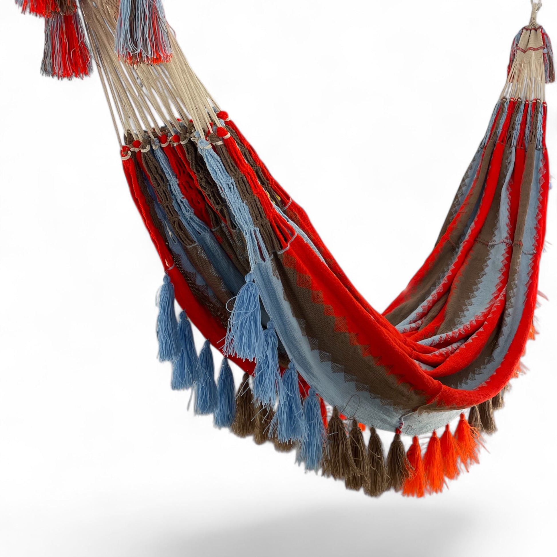 Il chinchorro è molto più di una semplice amaca: è un'opera d'arte tessile che porta con sé secoli di tradizione e cultura indigena. Perfetto per creare un angolo relax bohemien in casa, in giardino o in terrazza, questo chinchorro trasforma ogni spazio in un rifugio di comfort e stile etnico.